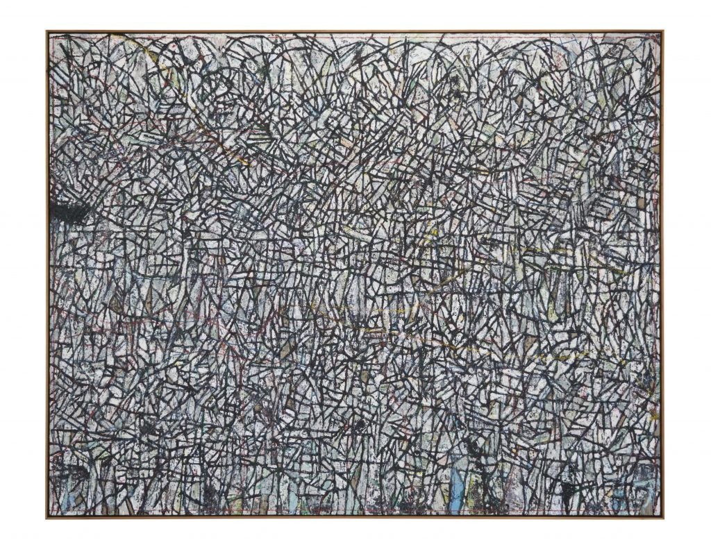 Ever Gold [Projects] is pleased to present NOAH, an exhibition of new work by Zachary Armstrong. NOAH is part of an ongoing series of large scale paintings by Armstrong based on a childhood drawing by his brother. Much of Armstrong’s work involves reworking the imagery of childhood artwork, both his own and that of friends and family, taking an original drawing as a structure to develop and expand to its limits. The original drawing that is referenced in NOAH is a stick figure portrait of the artist created three days after his birth by his then four-year-old brother. Three years ago, Armstrong turned the image into a stamp, using this tool to create an allover pattern and overlapping the figure to the point of abstraction. For NOAH, this pattern covers large scale encaustic paintings, which are hung over a wallpaper of the same pattern.
