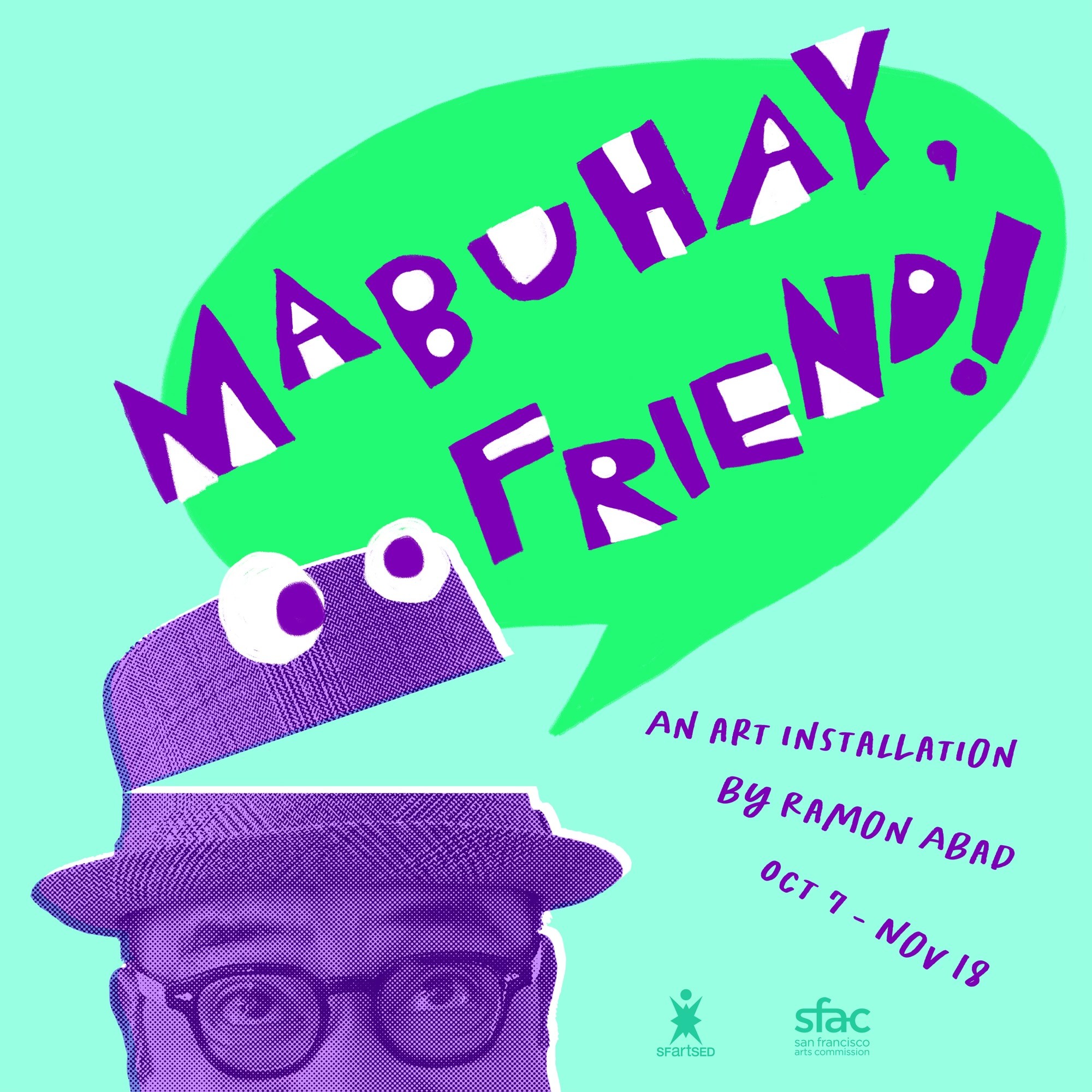 The San Francisco Arts Education Project is thrilled to announce Mabuhay, Friend! – an art installation and exhibition by Artist Mentor and puppeteer extraordinaire Ramon Abad. Mabuhay (pronounced “mah – BOO – high) translates to “welcome” or “cheers to life” in the Filipino dialect of Tagalog. This installation features a new series of interactive sculptures of puppets which visitors of all ages are encouraged to activate and move through touch.