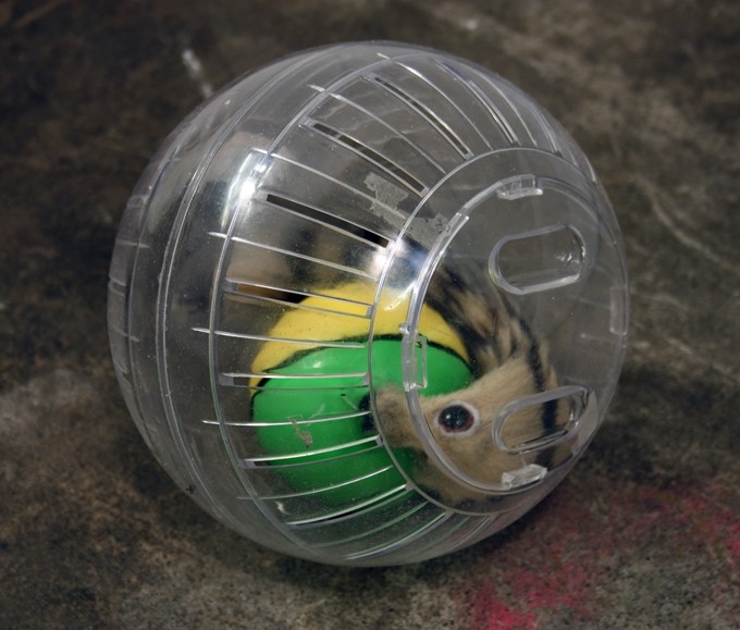 The first edition of Summer Camp will feature a brand new installation by Denver based artist Mark Benson, entitled Life, Liberty which follows the movements of a robot weasel chasing a ball inside a larger ball, slowly making its way across the gallery floor, every once and again bumping into another robot weasel chasing a similar ball inside a similar larger ball. Some have stopped altogether and as a result it’s unclear if the weasels always or never have the ball.